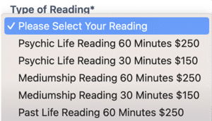 In the Description field, please let us know if you’d prefer an in-person reading or via ZOOM.
